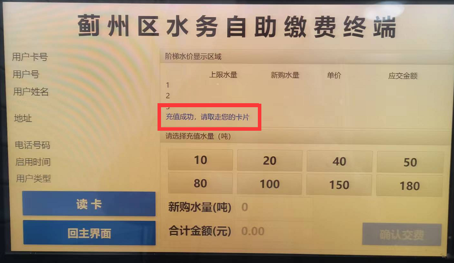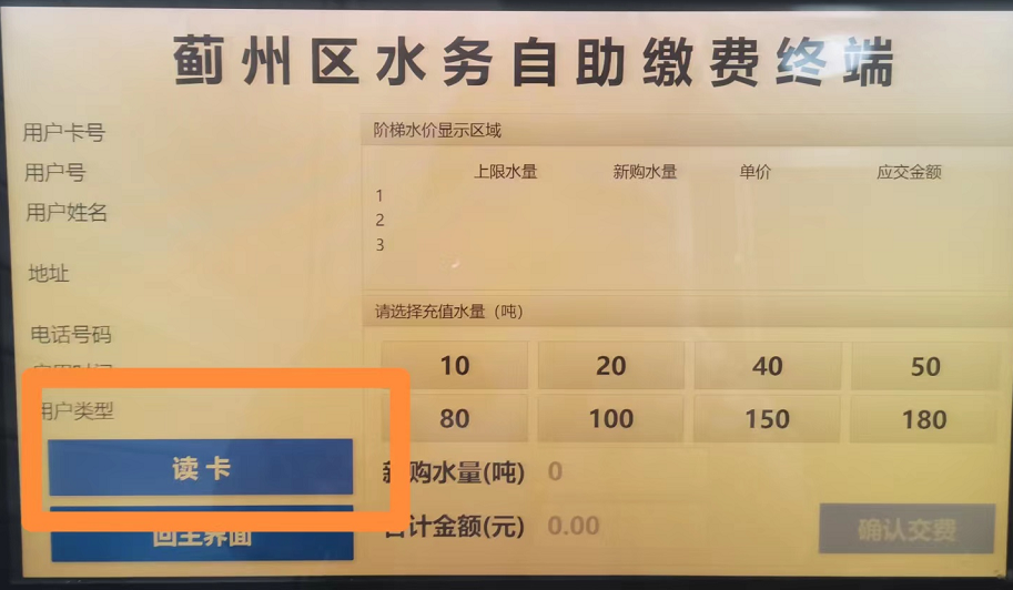 2、繳費機繳費:將水卡放到讀卡區(qū),如圖