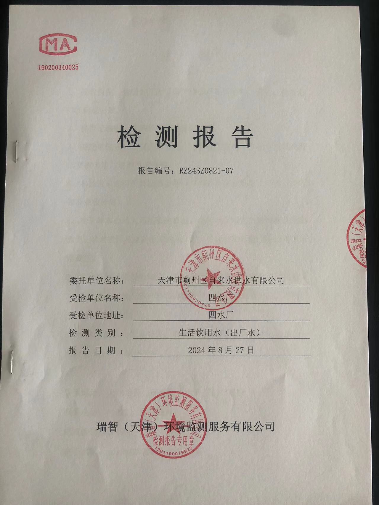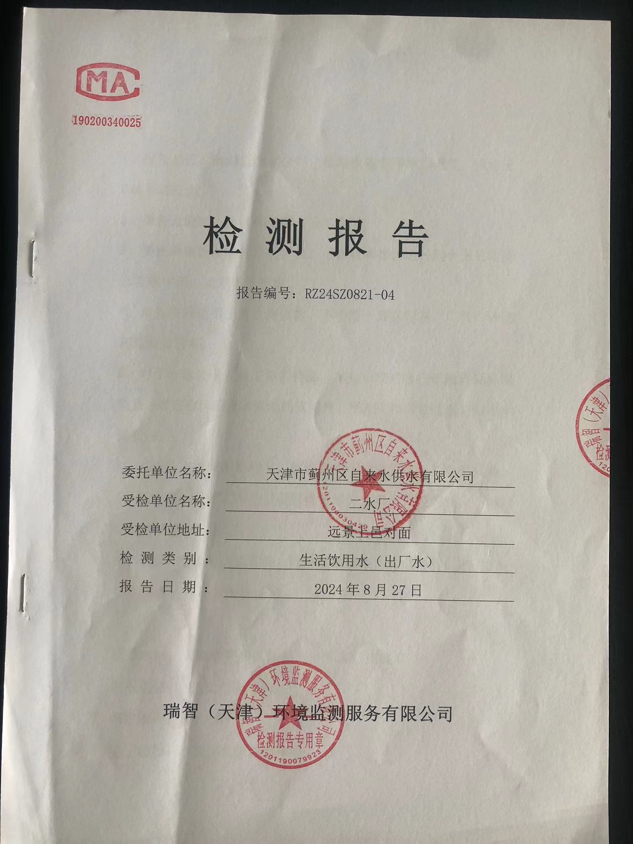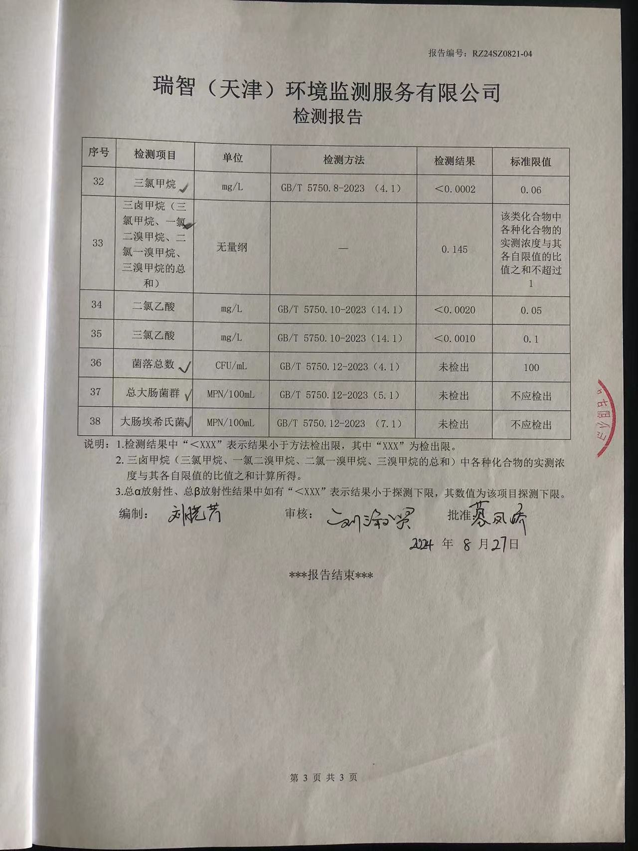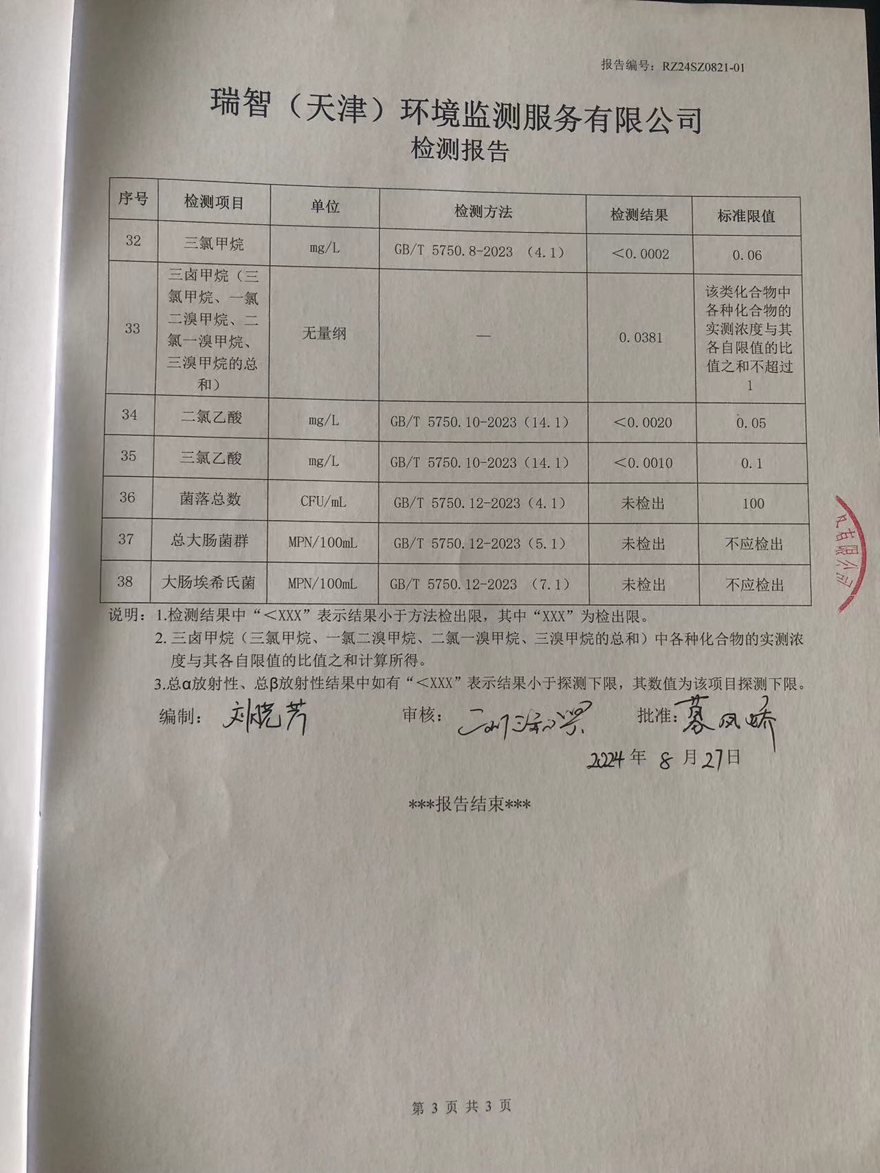 2024年8月份水質(zhì)檢測(cè)報(bào)告