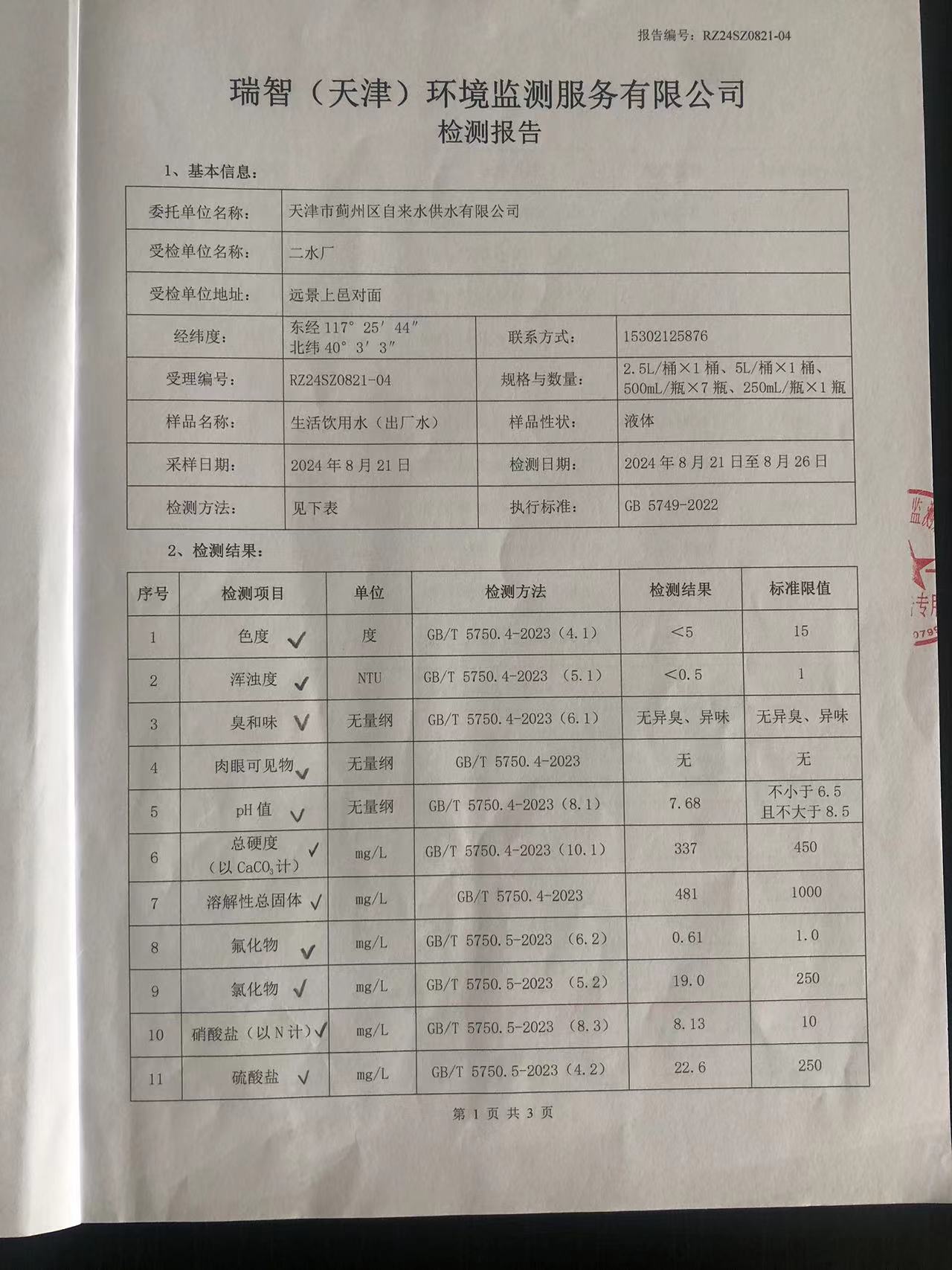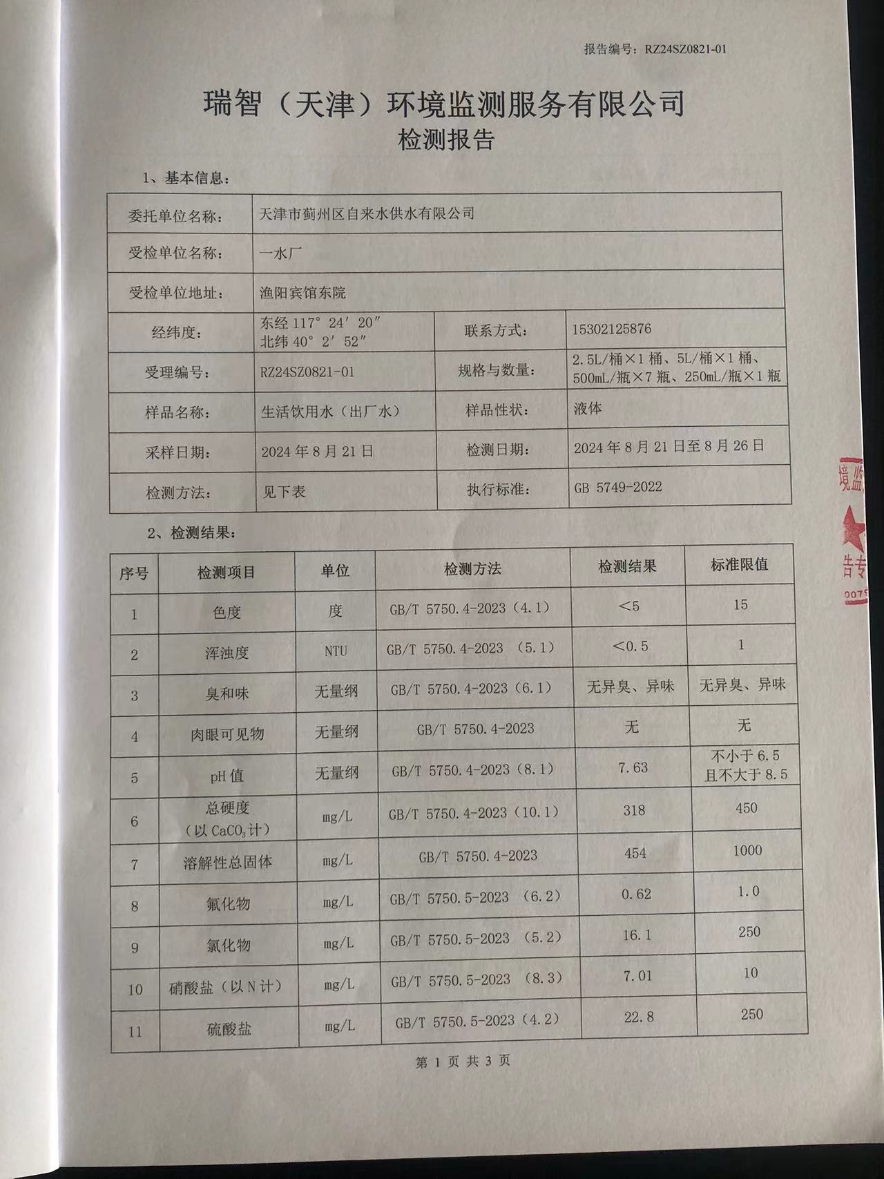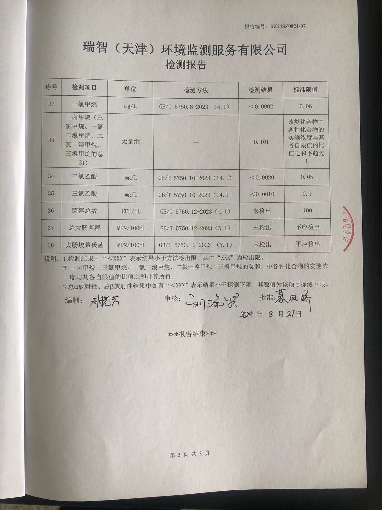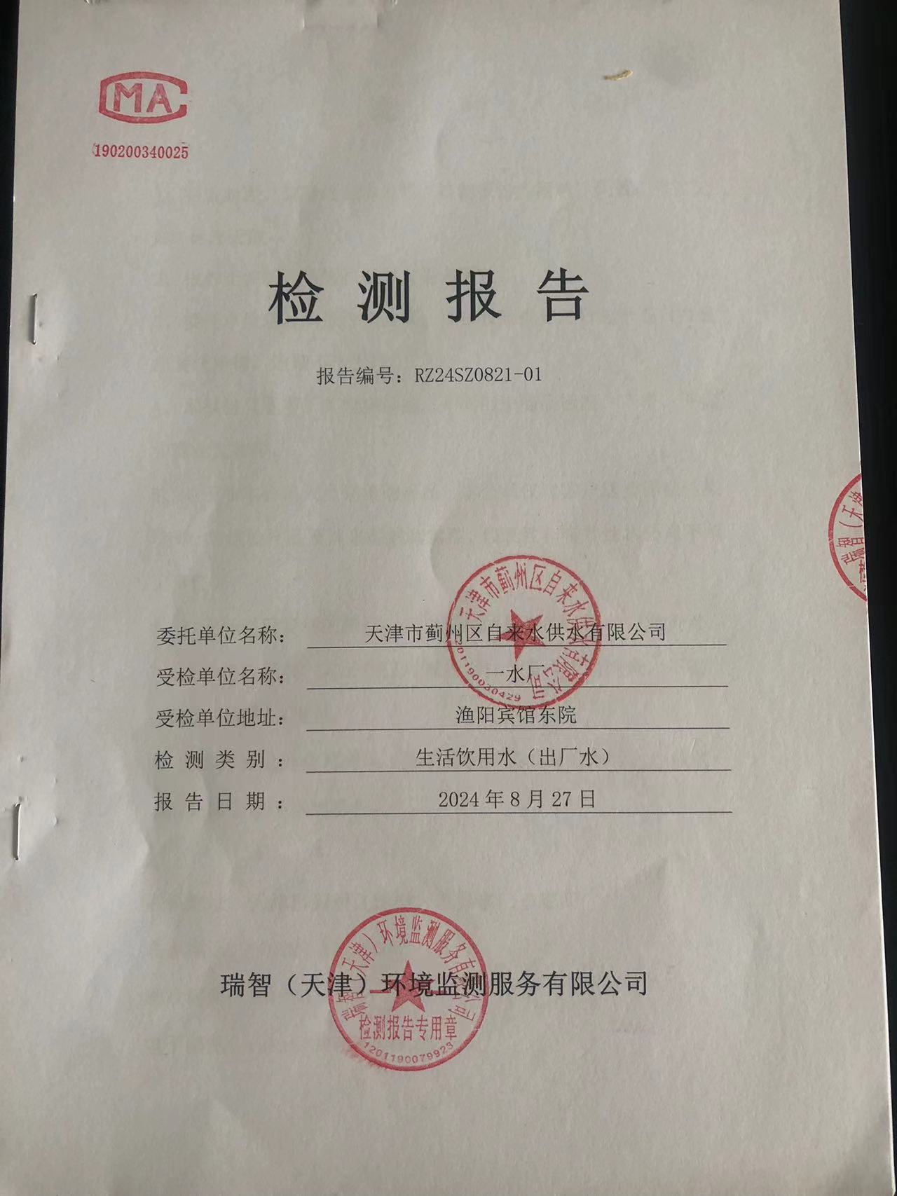 2024年8月份水質(zhì)檢測(cè)報(bào)告
