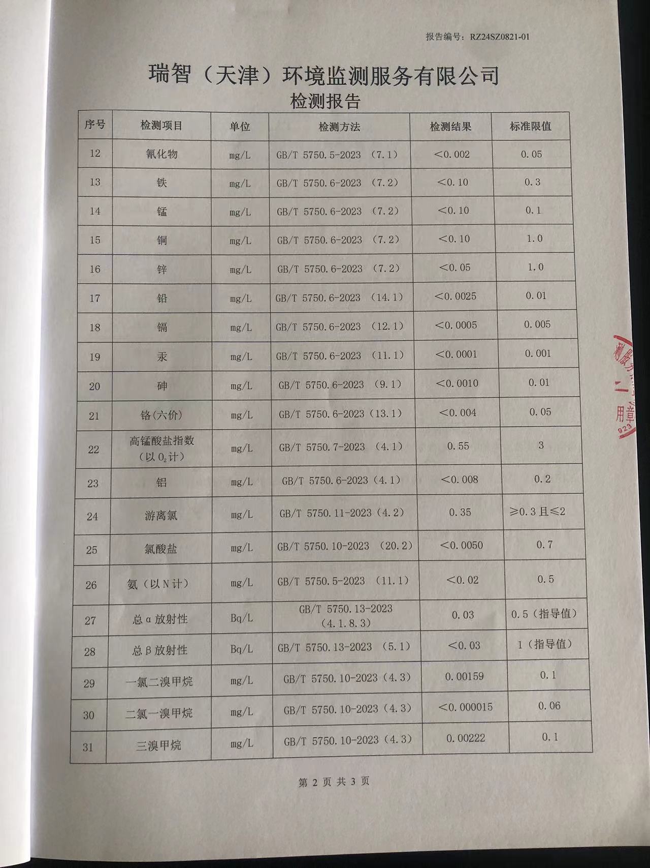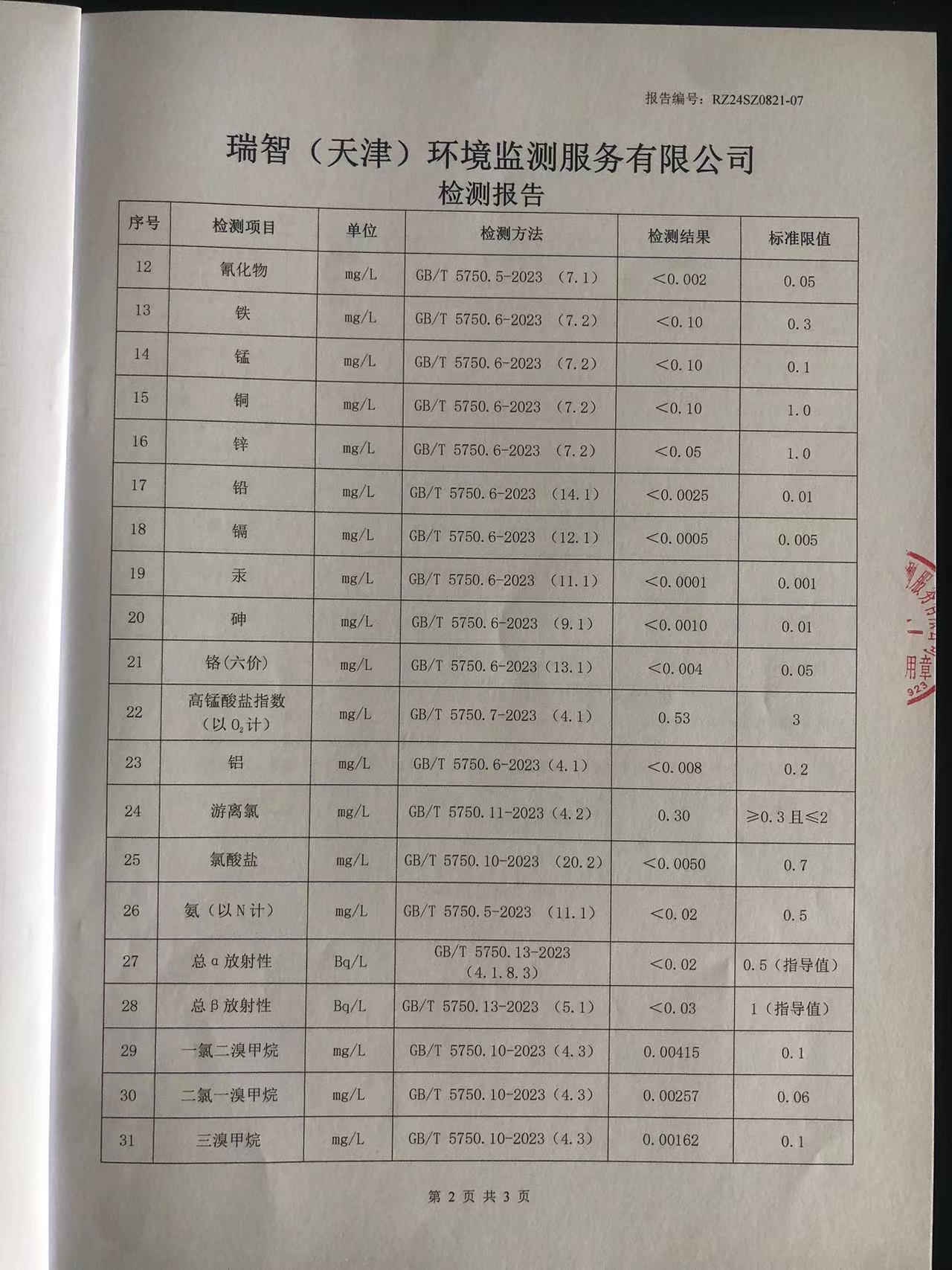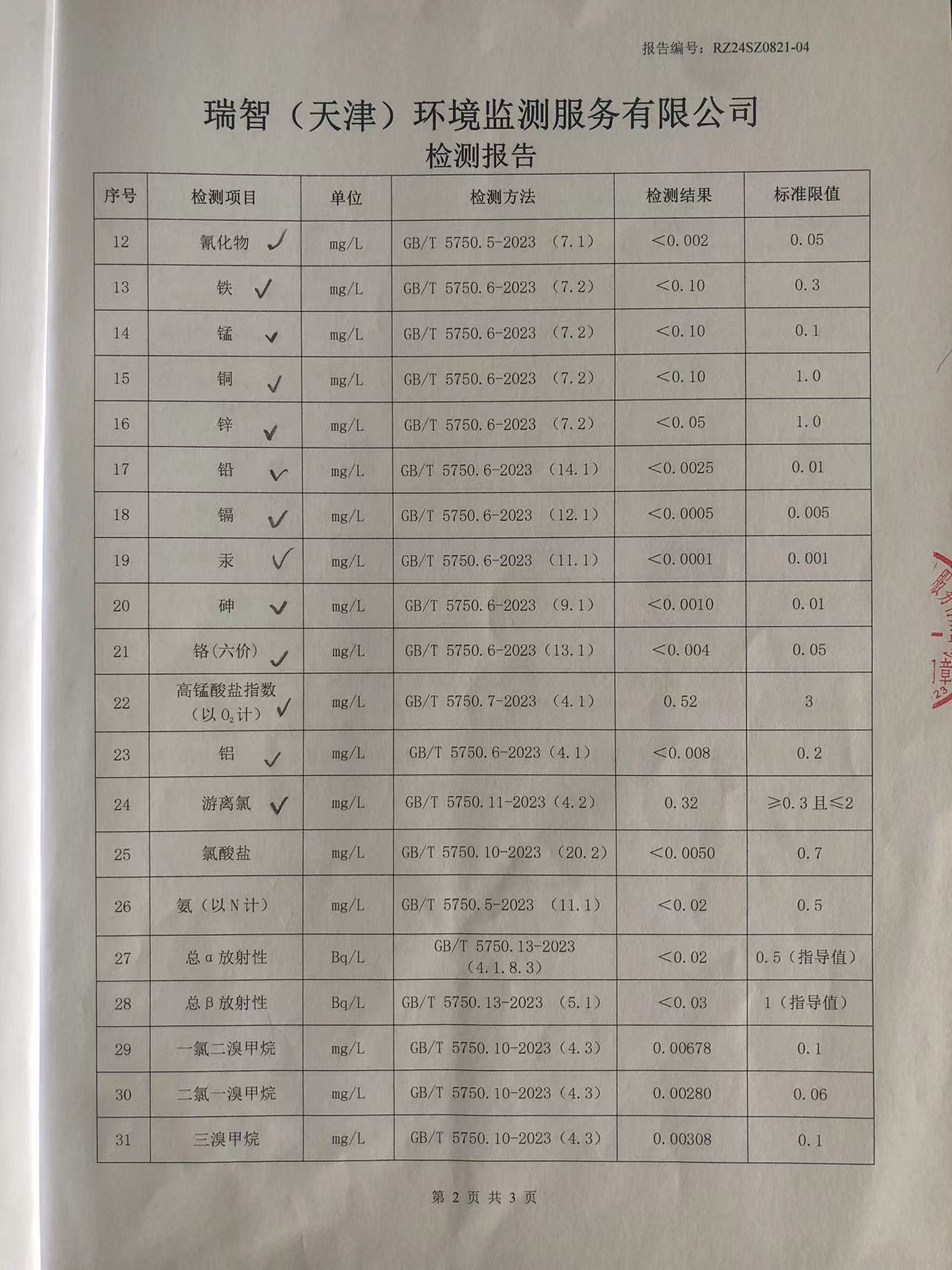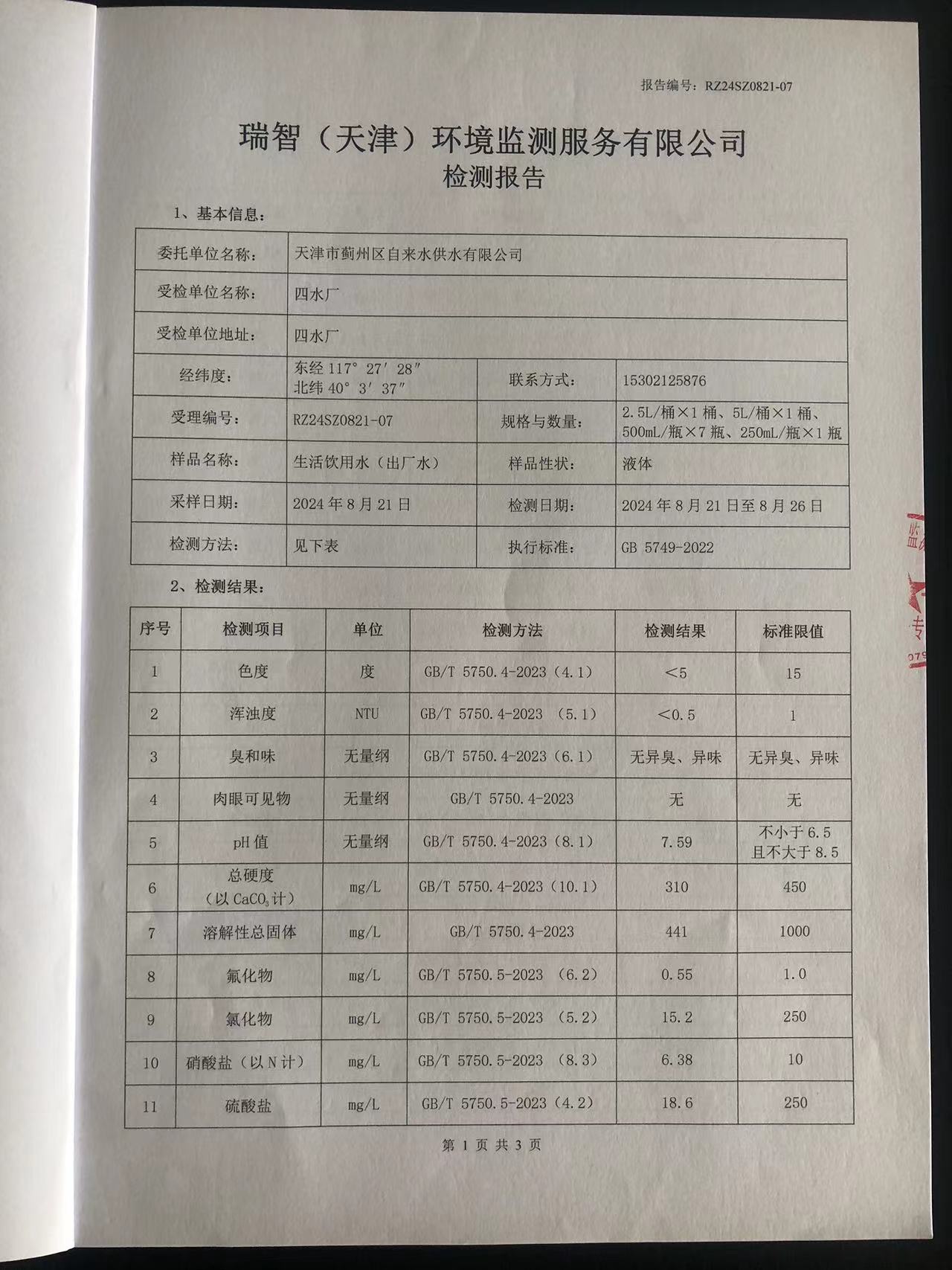 2024年8月份水質(zhì)檢測(cè)報(bào)告