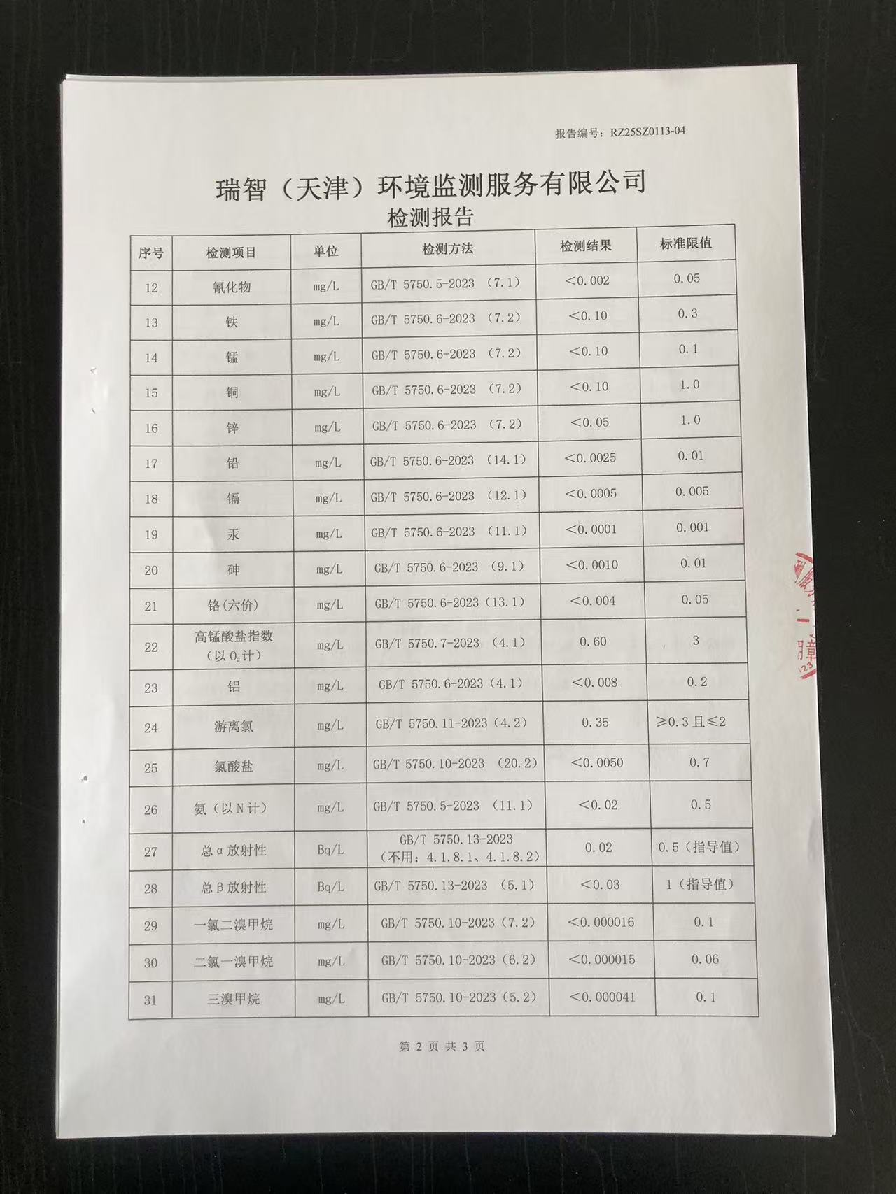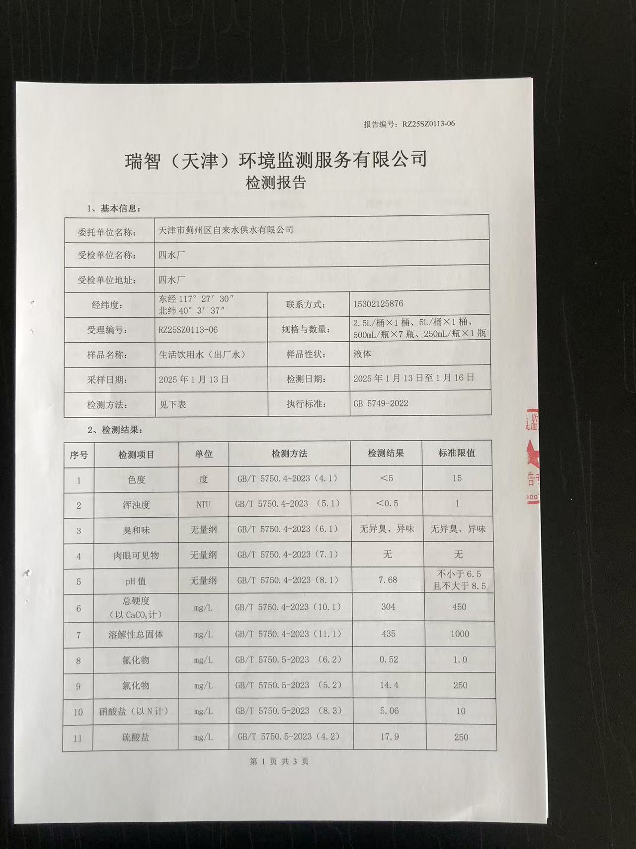 2025年1月份水質(zhì)檢測(cè)報(bào)告